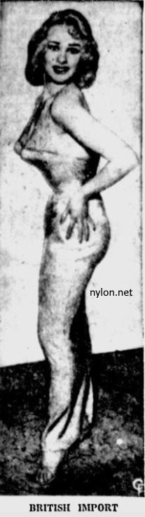 OH, I SAY! — This is Sabrina, In New York from Britain to fill — and we mean fill! — television engagements. Sabrina's beau-tistics are 41½ -18-36, it says (and looks).