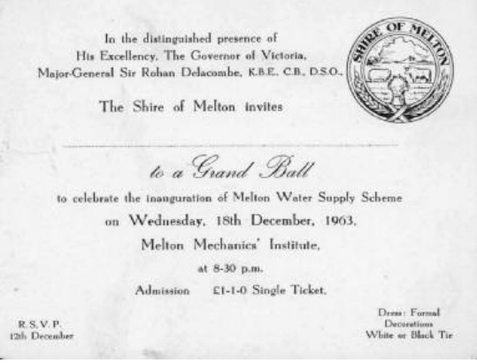 But 18 Dec 1963 was a Wednesday, which matches the PDF's picture of an invitation to the Grand Ball to celebrate the inauguration of the Melton Water Supply Scheme.]