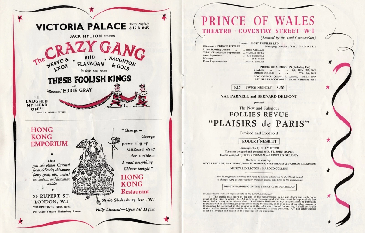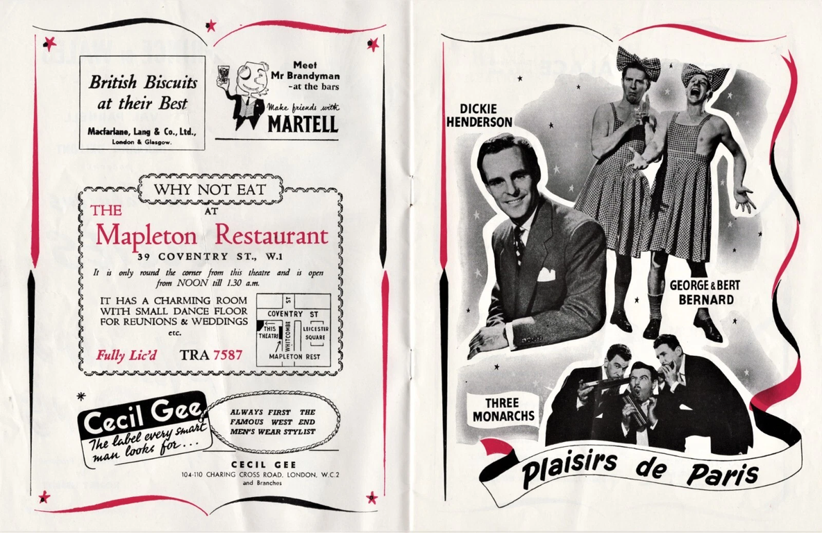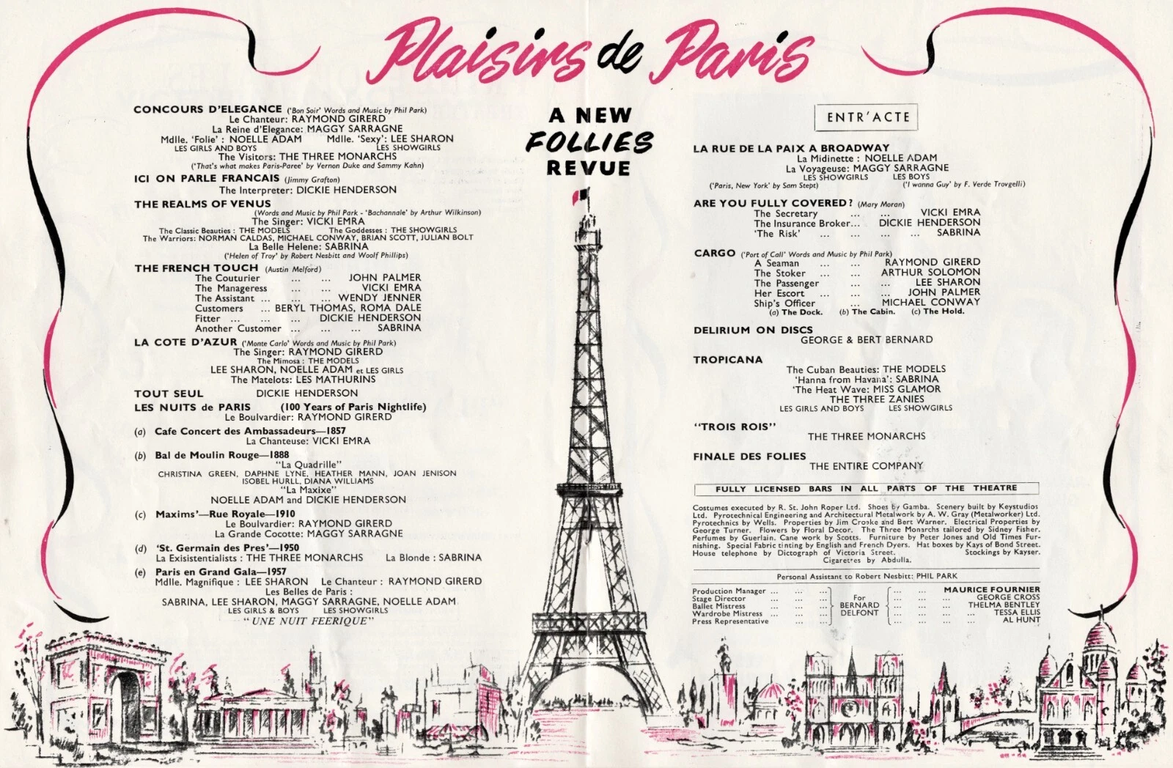 THE night of Saturday (April 20 [1957]) is an eventfully historic occasion in the life of contemporary revue theatre, in particular, and show business, in general. For one reason. Because, in company with experienced show-stoppers like GEORGE and BERT BERNARD, a young, all-round veteran, DICKIE HENDERSON, and the madcap THREE MONARCHS, a totally inexperienced (by comparison) young blonde is taking the stage to star in "Plaisirs de Paris," the latest Follies at the Prince of Wales Theatre. And the question of the hour in "show biz" circles is will she make it, or will she flop? I hope she makes it — I mean SABRINA, the lassie from Lancashire, whose pictures decorate our pages.